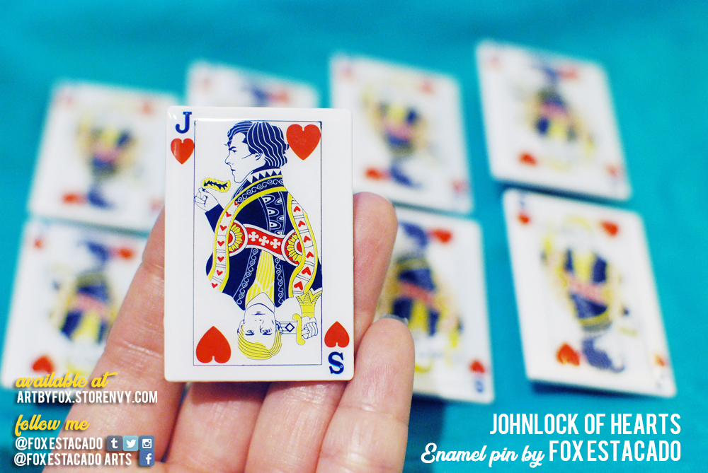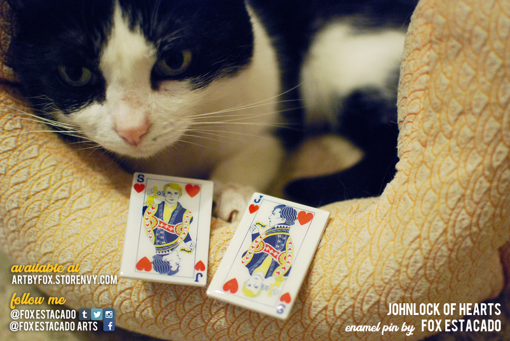 Johnlock of Hearts, a 2 inch enamel pin by Fox Estacado.