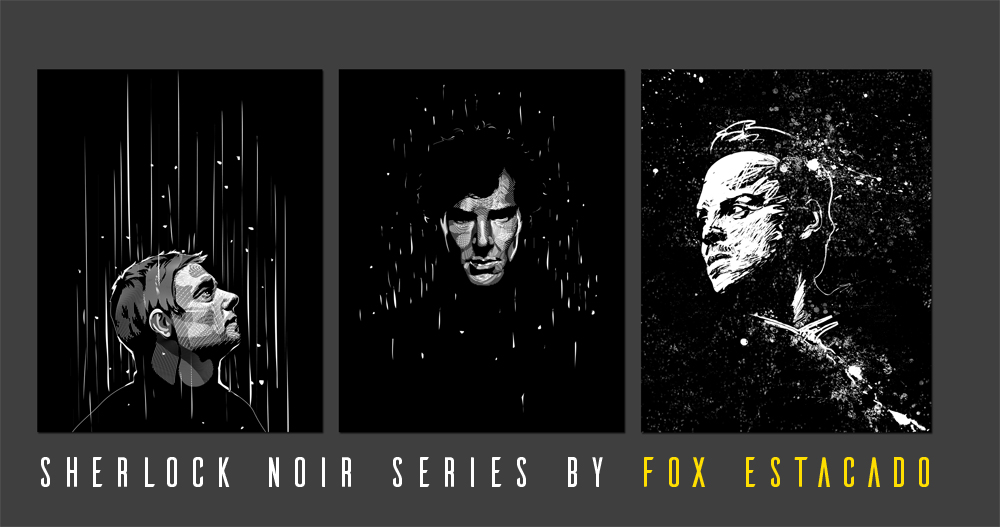 The Sherlock Noir series is a noir-inspired minimalist design drawn using an engraving style of illustration.