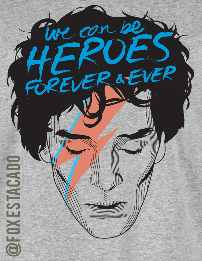 The "We Can Be Heroes" shirt is both a nod to the Sherlock series and an homage to David Bowie, who passed just a little over a year ago. Rest in Power.