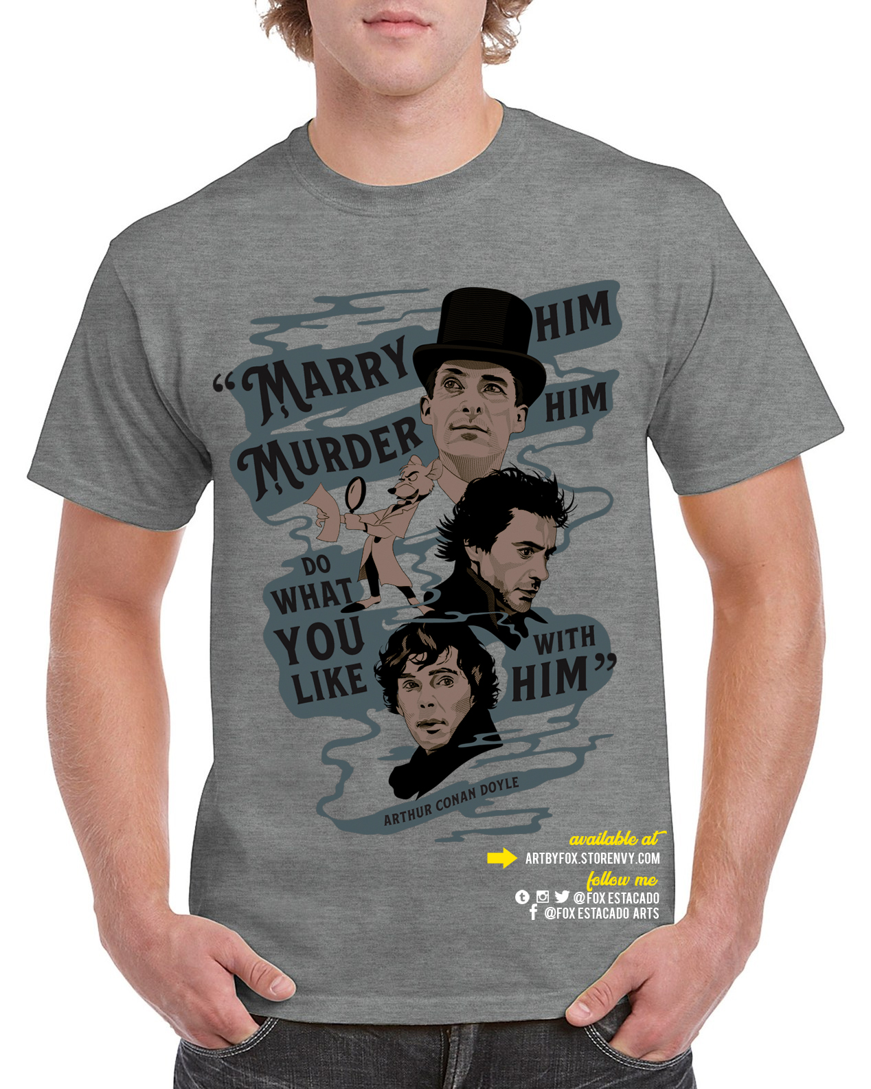 This shirt will be available for pickup for 221b Con! Please specify that you will be picking this shirt up there, if you're attending 221b Con 2023. Shipping rates still apply to cover the cost of the transaction fees + shipping shirts to Atlanta.