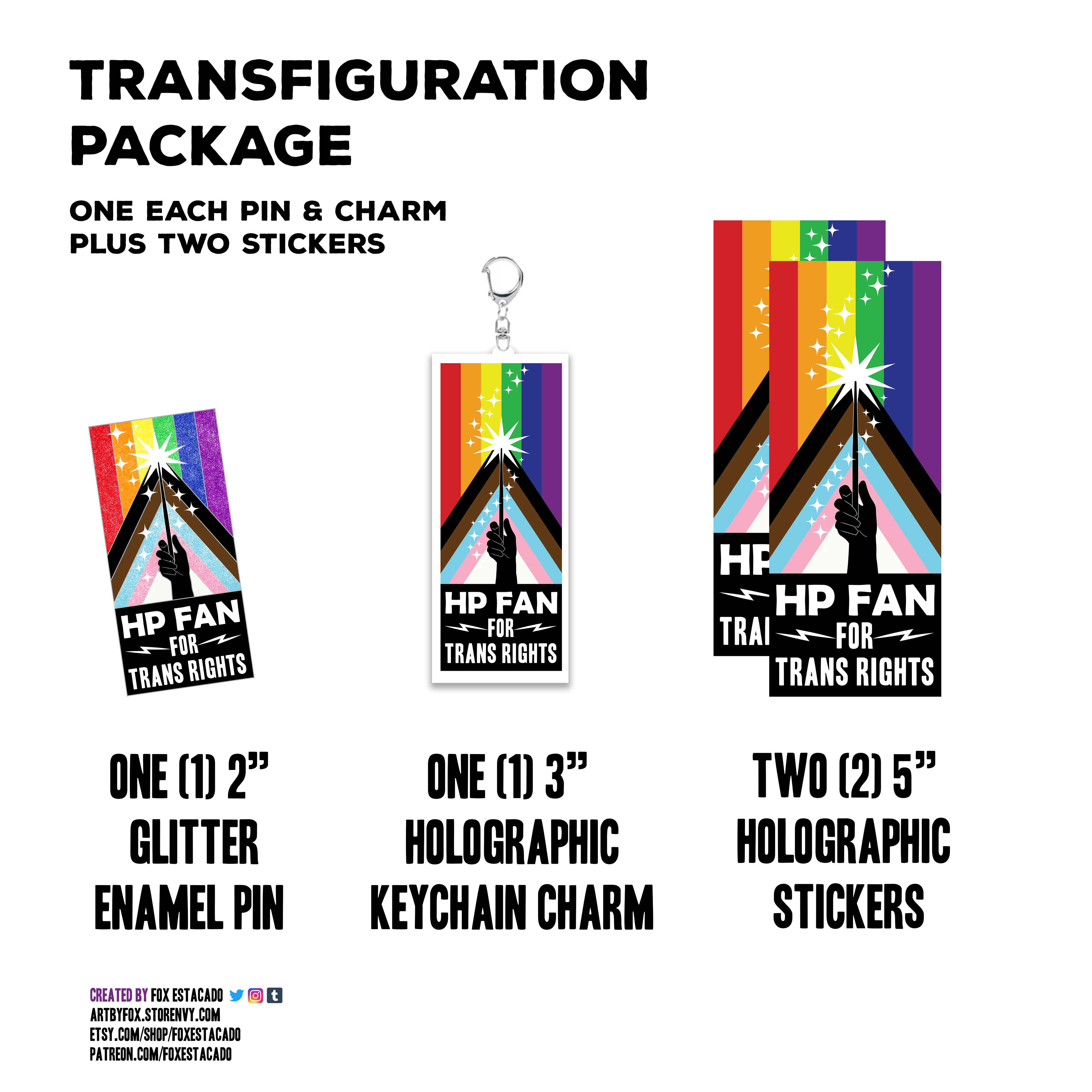 *The Transfiguration Package ($35): 1 charm, 1 enamel pin, 2 stickers
