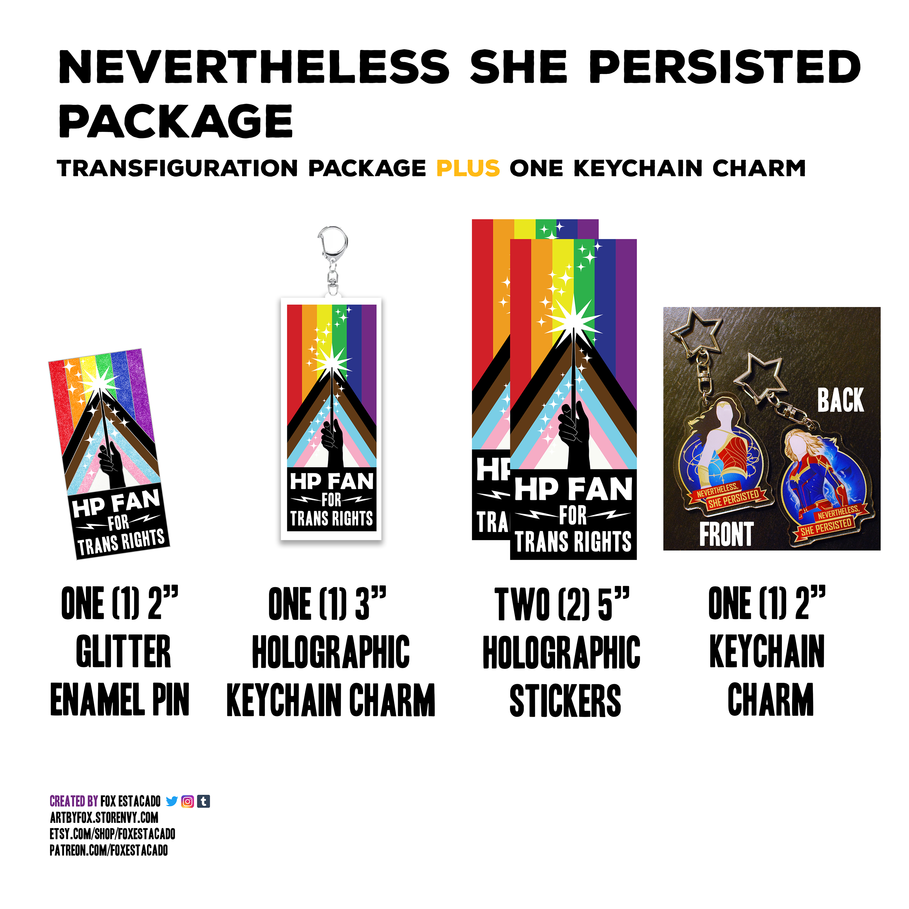 * The "Nevertheless She Persisted" Package ($50): The Transfiguration Package + 1 Nevertheless She Persisted charm