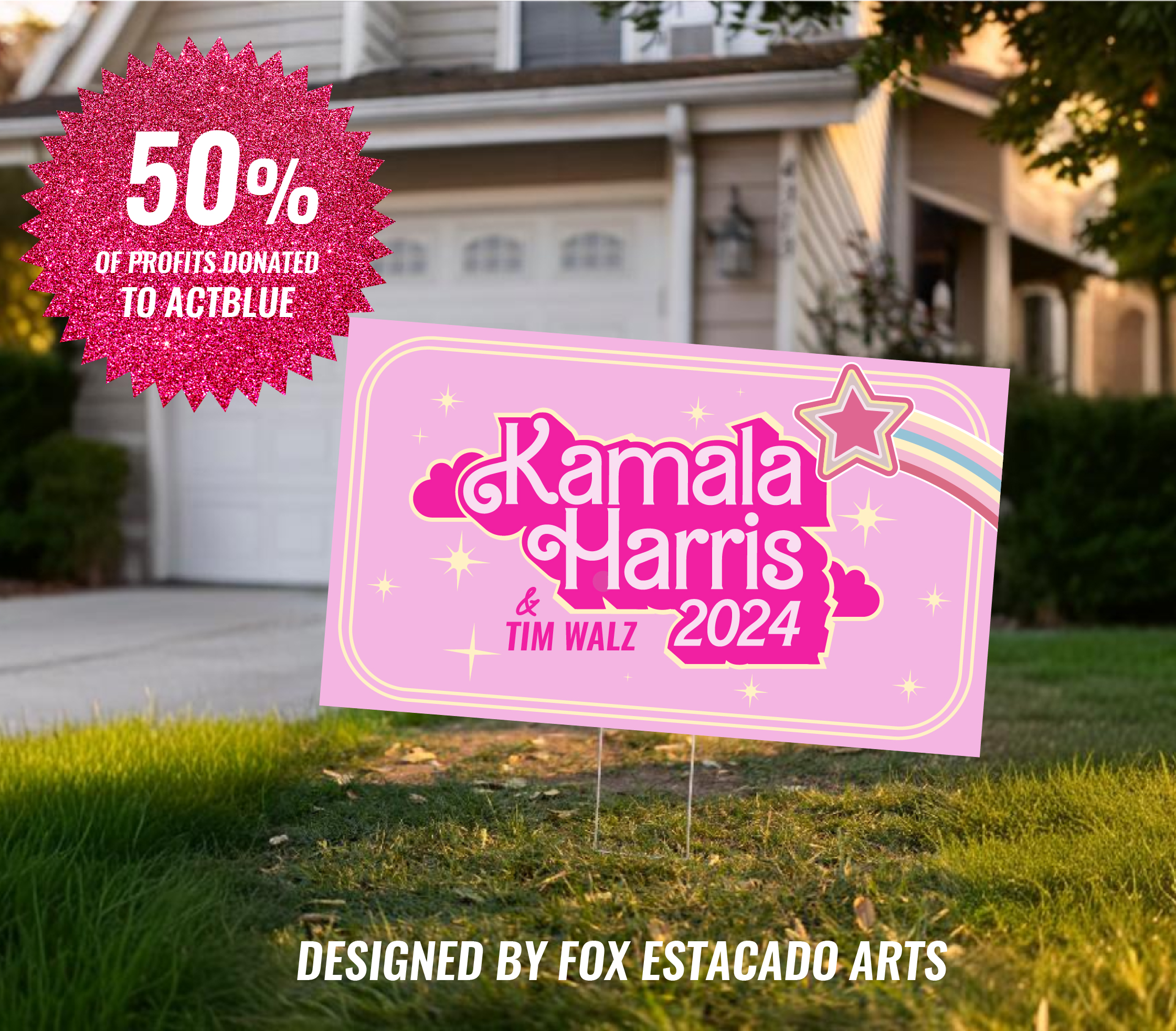 Show your support for Kamala Harris for President! Get a lawn sign and 5 stickers (to adorn your reusable water bottle and share with friends, family, and total strangers!) to show your neighborhood that you stand for women, LGBTQ people, children, families, the climate, and our democracy. 50% of profits will be donated to ActBlue, the processing vendor for the Official Harris Victory Fund. Donation will be based on income minus expenses calculated on or about October 31, 2024.