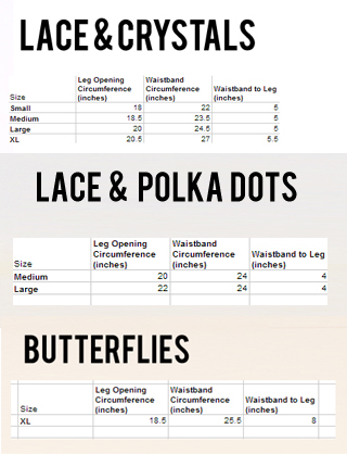 Notes on Fit: Underwear sizes tend to run small, so please see Underwear Sizing Info in the product photos. All measurements are taken with garment laying flat. All underwear are somewhat stretchy. Please review sizes carefully, as underwear cannot be returned.